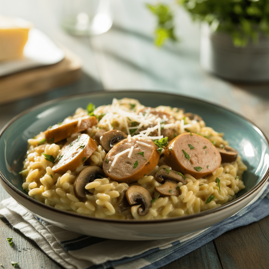 Ever have one of those nights where you’re staring into the fridge, willing a delicious dinner to magically appear? You want something cozy and satisfying, but you don’t have hours to spend stirring a pot. Well, honey, let me introduce you to your new best friend: this Chicken Sausage & Mushroom Orzo Risotto. It’s got all the creamy, comforting vibes of a traditional risotto without all the fuss. And honestly, isn’t that what we’re all looking for on a busy weeknight?