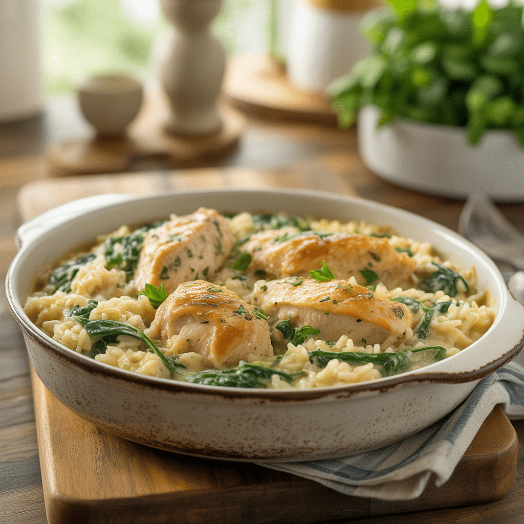 Ever have one of those nights where you’re staring into the fridge, willing a delicious dinner to magically appear? Yeah, me too. That’s exactly why this Creamy Garlic Chicken & Rice Bake with Spinach is my go-to lifesaver. It’s the kind of meal that feels like a big, warm hug but doesn’t ask you to spend your entire evening chained to the stove. Everything cooks together in one dish, the flavors meld into something absolutely magical, and you’re left with a hearty, satisfying dinner that everyone will love. What’s not to love about that?