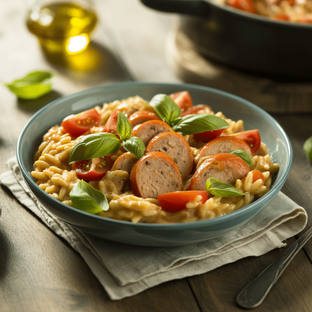 Let me count the ways you’ll fall for this recipe. First, it’s a true one-pot wonder. You’ll brown the sausage and cook everything else right in that same pot, which means you’re not staring down a mountain of dishes afterward. Second, it comes together in about 30 minutes, making it perfect for those hectic evenings. And third, it’s just so, so satisfying. The creamy orzo, the juicy sausage, the bright tomatoes and basil—it’s a hug in a bowl.
