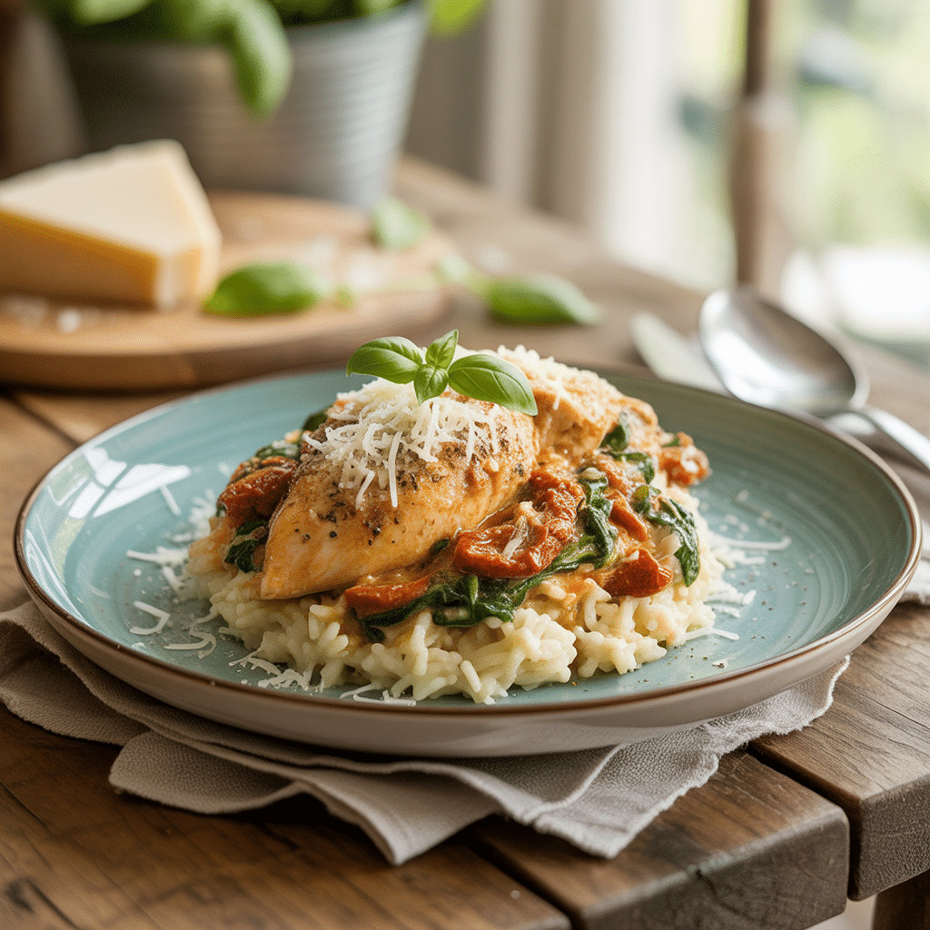 Creamy Tuscan Chicken & Rice with Sun-Dried Tomatoes