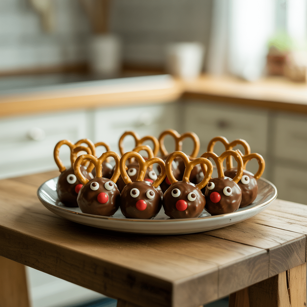 These little reindeer are the star of any holiday dessert platter. Arrange them on a festive plate alongside other simple Christmas desserts like sugar cookies or fudge. They’re the perfect finger food for your holiday party desserts table. For a fun Christmas party dessert idea, set up a DIY station with the dipped heads and bowls of decorations and let your guests create their own reindeer. They pair wonderfully with a cold glass of milk for the kids or a hot coffee for the adults.