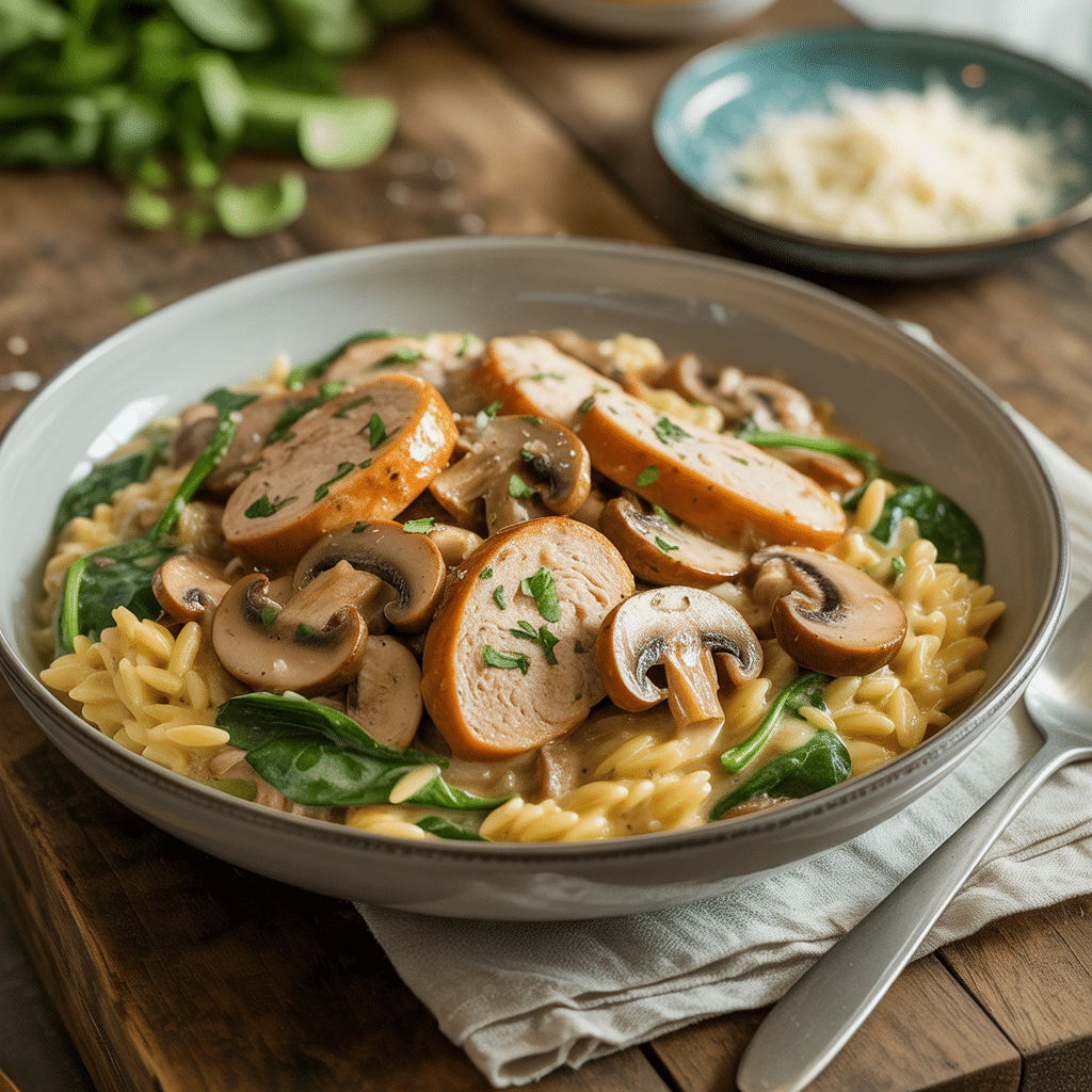 - Can I make this dish ahead of time? You can prep the components ahead—slice the sausage, chop the veggies—but I highly recommend enjoying this one-pot creamy mushroom chicken sausage orzo fresh for the best texture.