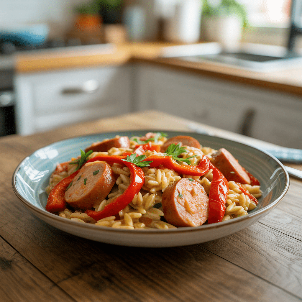 Have you ever stood in front of the fridge at 5 o’clock, hoping dinner would magically put itself together? Yeah, me too. That’s exactly why this Roasted Red Pepper Chicken Sausage Orzo is my new weeknight hero. It’s one of those toss-it-all-in-the-pot kind of meals that feels like a big, warm hug without keeping you tied to the stove for hours. It’s got that creamy, satisfying comfort of a risotto but without all the fussy stirring. Honestly, it’s the kind of dish that makes everyone at the table think you slaved over it, when really, you were just being brilliantly efficient. Let’s get cooking.